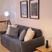 Apartment composed of two bedrooms, one with only a bed and the other one with also a sofa bed, a living room with two sofa beds, a kitchen and two bathrooms.